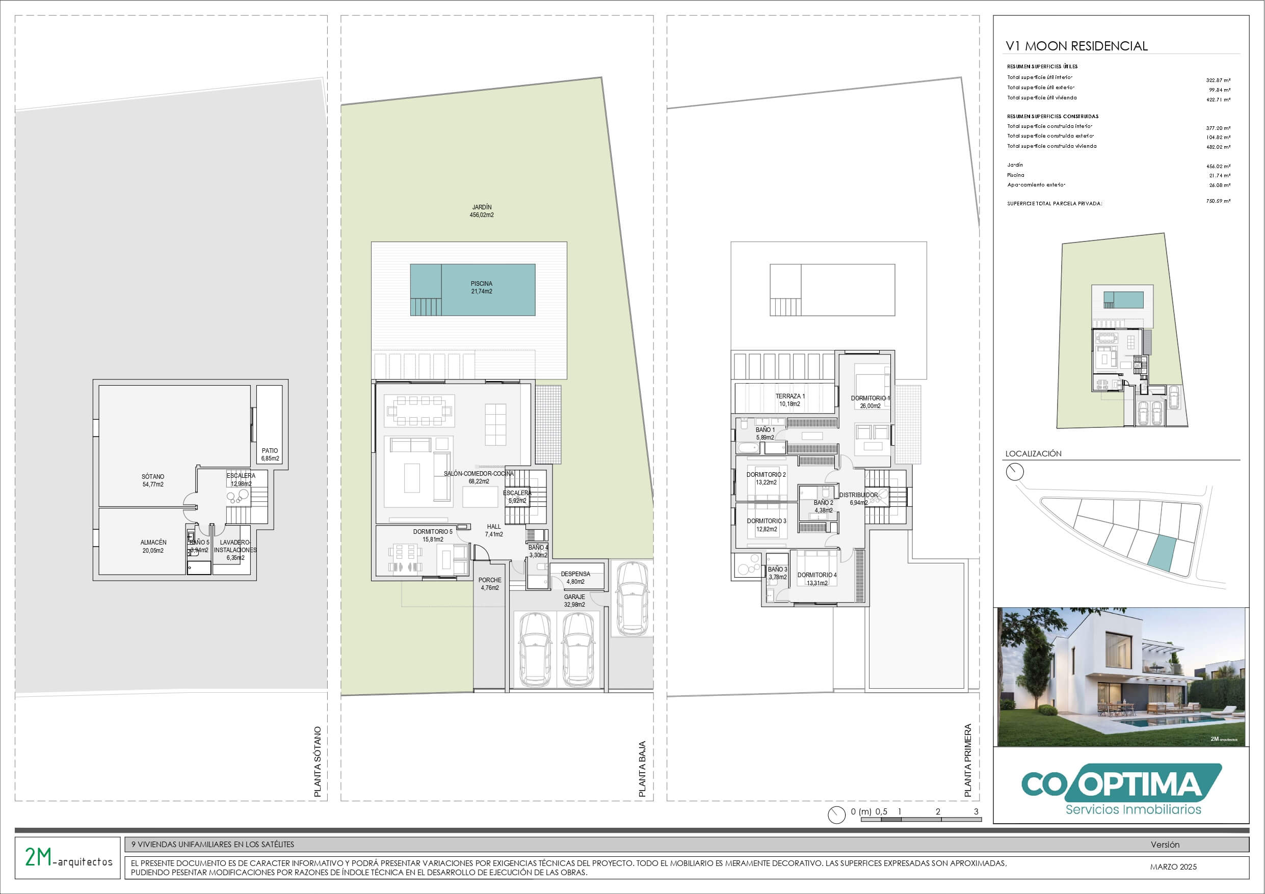 Cada chalet cuenta con una parcela privada de más de 700 m² y una superficie construida superior a los 400 m², con distribución de 3, 4 o 5 dormitorios y estancias amplias y luminosas. Las viviendas se entregan con las mejores calidades y ofrecen múltiples opciones de personalización (consultar condiciones y precios).