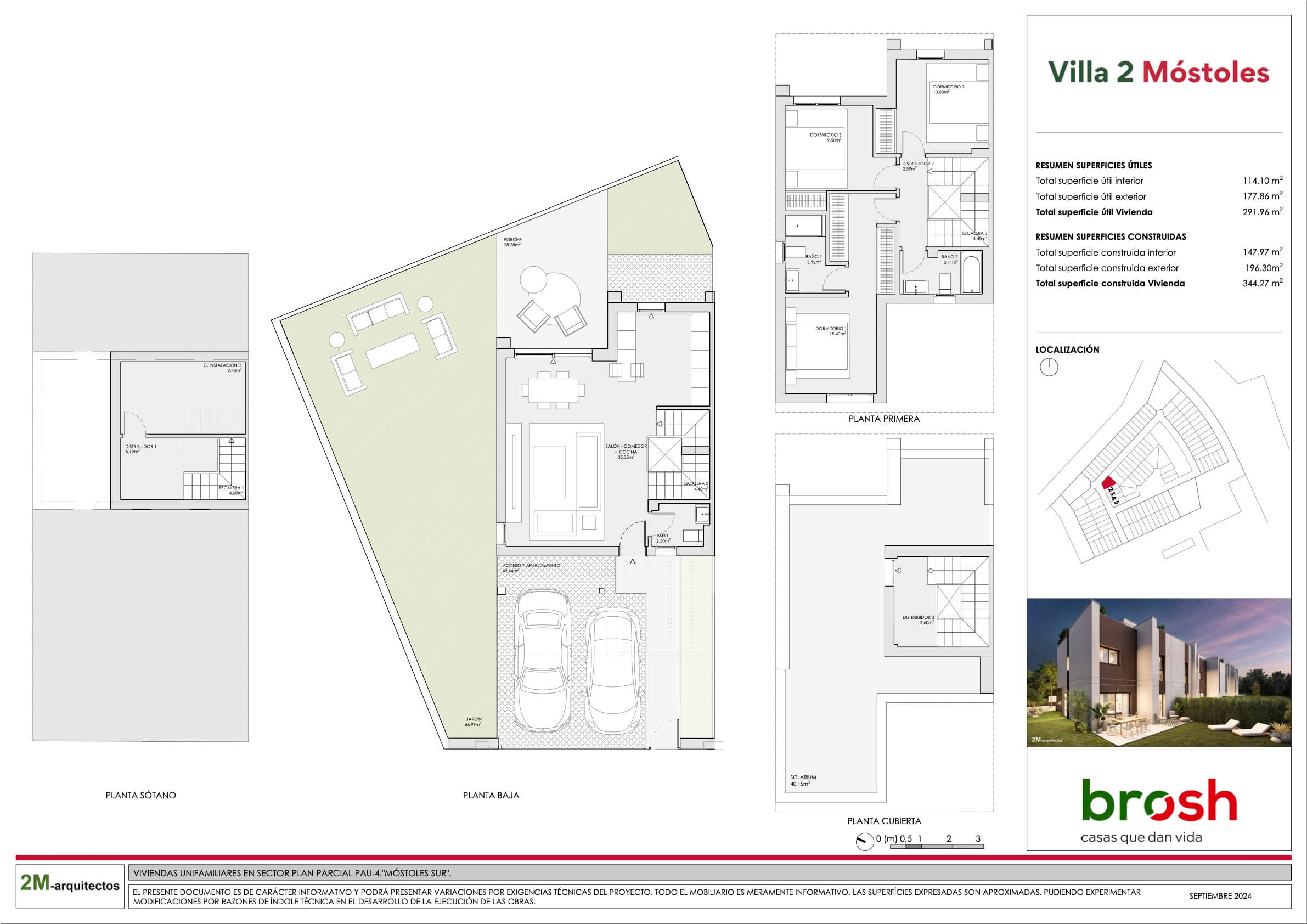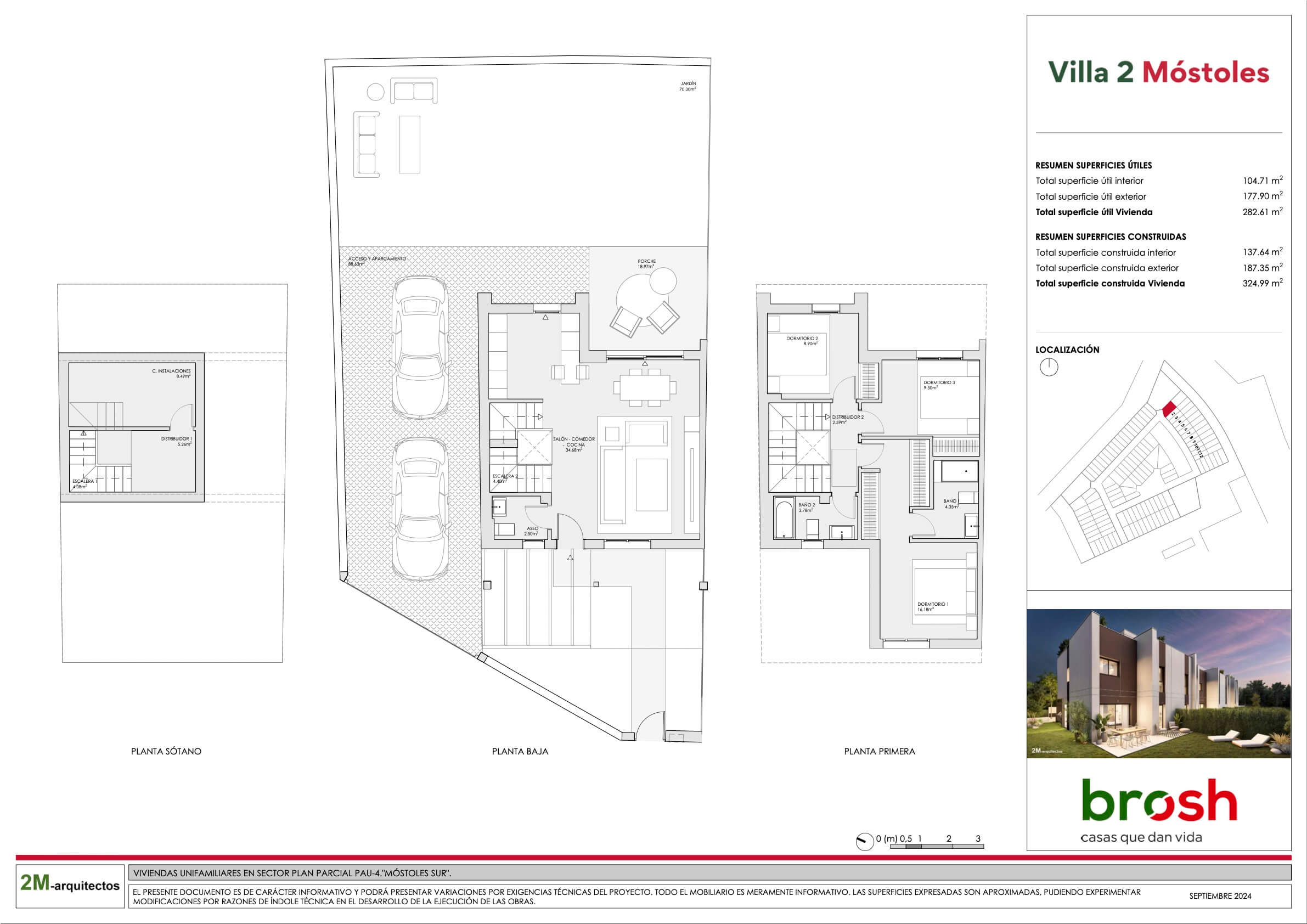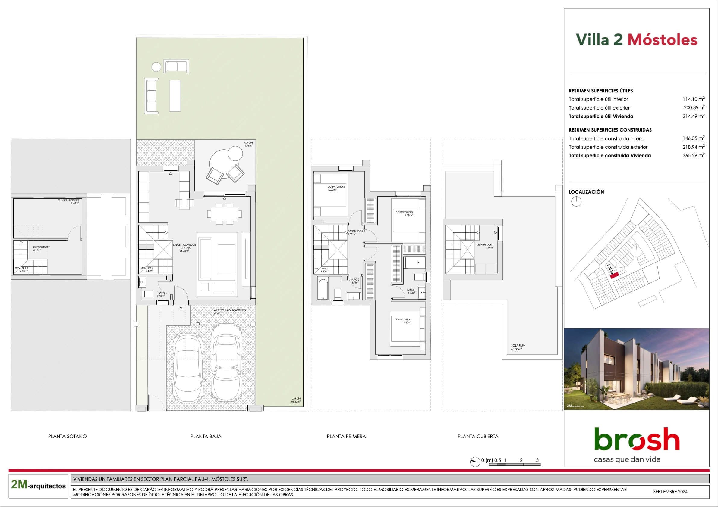 Villa 2 ofrece chalets exclusivos diseñados para maximizar la luz natural, con jardín privado y un amplio solárium que proporciona un espacio adicional versátil y acogedor. Añadiría también que las viviendas cuentan con 2 plazas de parking privadas en superficie dentro de la parcela y un trastero en la planta sótano, ofreciendo así mayor comodidad y capacidad de almacenamiento.